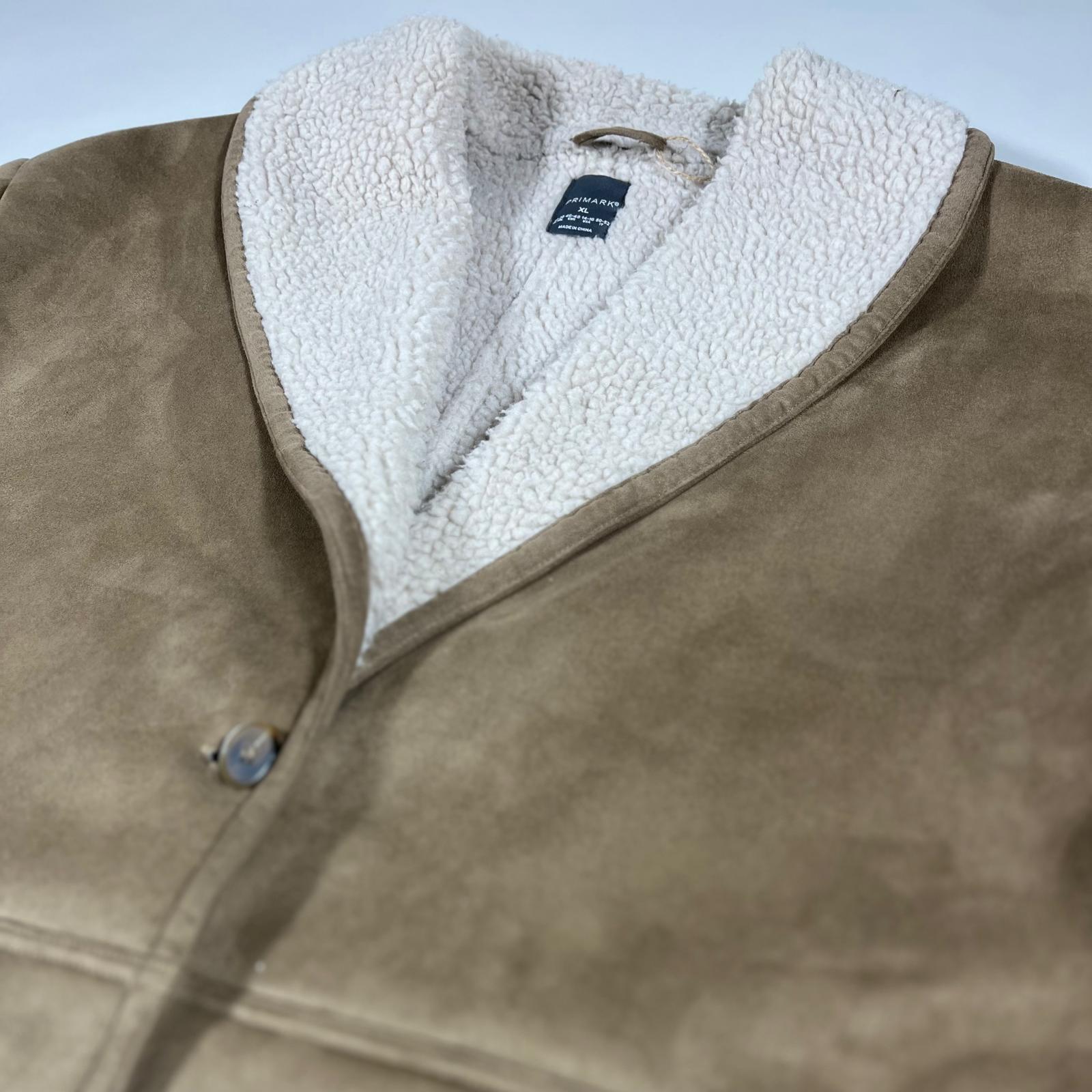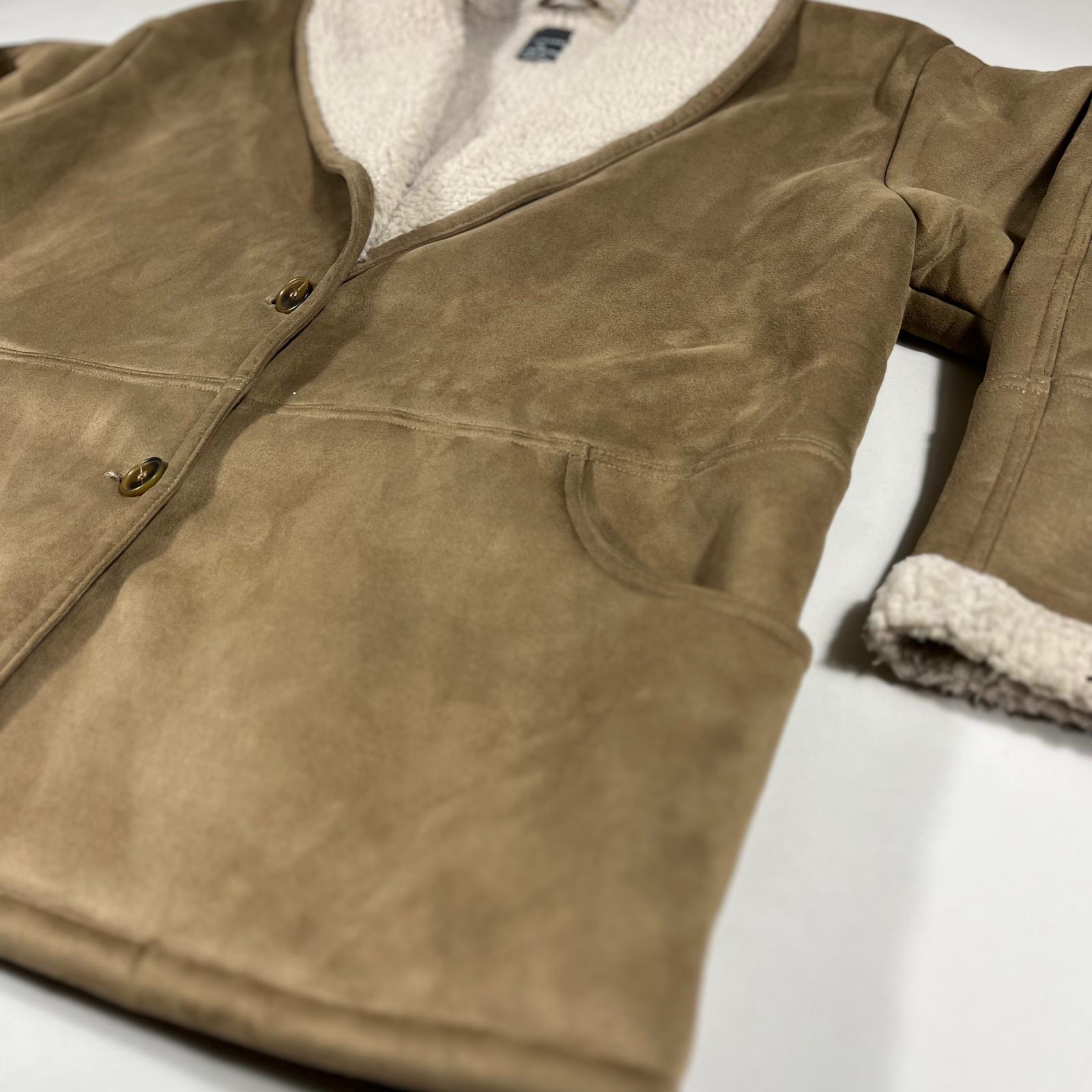 This brown sherpa-lined jacket features a cozy interior and a stylish exterior. With a button closure and two front pockets, it combines comfort with functionality. The soft texture ensures warmth, making it an ideal choice for colder days. Perfect for both casual and semi-formal occasions, this versatile jacket will complement various outfits while keeping you snug.