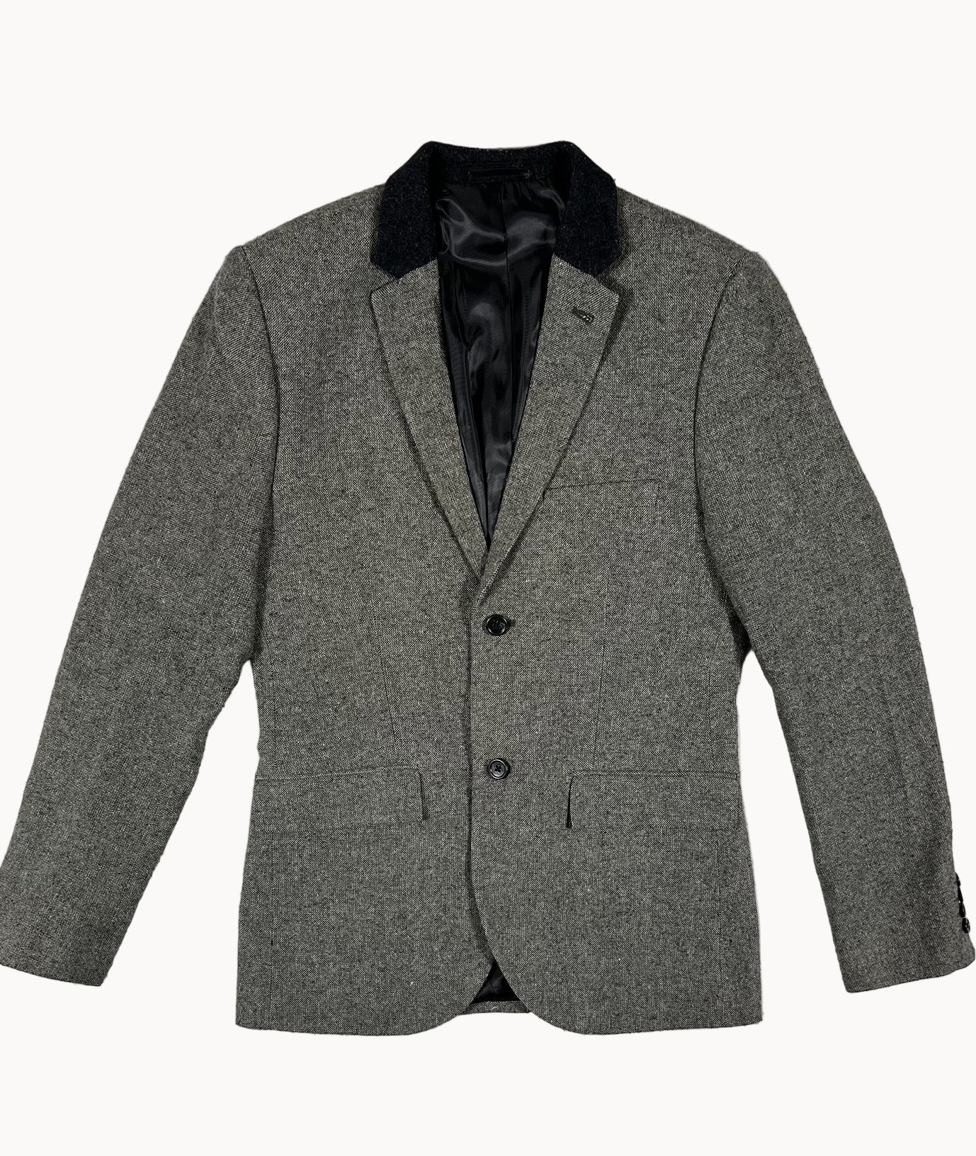 This stylish men's blazer features a classic gray design with a sophisticated collar. The tailored fit and elegant detailing make it suitable for both formal and casual occasions. Crafted from high-quality materials, it ensures comfort while maintaining a polished appearance. Perfect for layering over a shirt or sweater, it's a versatile addition to any wardrobe.